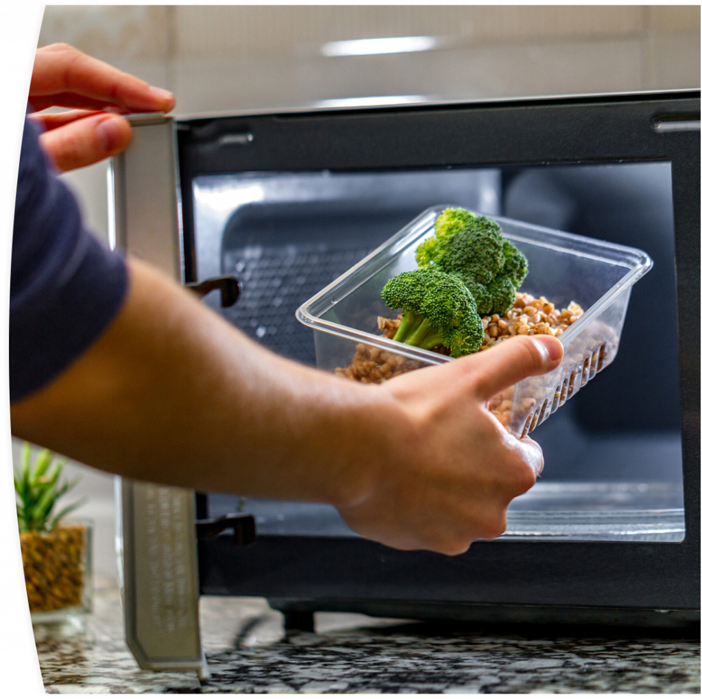 5.Не ја затоплувајте храната во пластични садови – Пластичните садови ослободуваат микропластични честички кога се загреани на повисока температура. Тоа се случува и со пластичните садови на кои е означено дека се “безбедни за употреба во микробранова печка”. Оваа ознака укажува дека садот нема да се стопи при употреба во микробранова печка, но не и дека нема да испушта микропластика во храната која се загрева. Затоа, при затоплување или приготвување на храната, употребувајте стаклени садови.